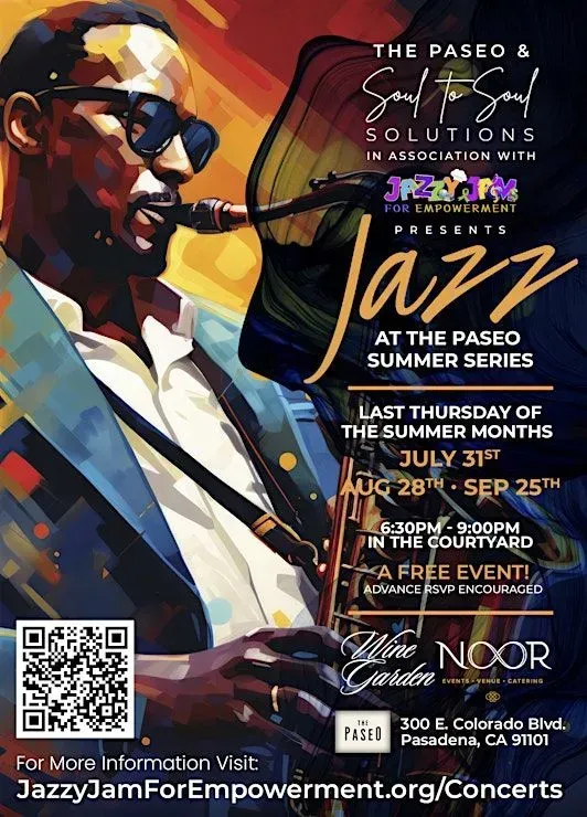 Join us at The Paseo for a soulful journey into the healing power of music. Experience the uplifting blend of jazz fusion on July 31, August 28, and September 25, 2025. Let soothing melodies lift your spirit and bring peace to your mind, body, and soul. Don’t miss this chance to feel music’s transformative touch.